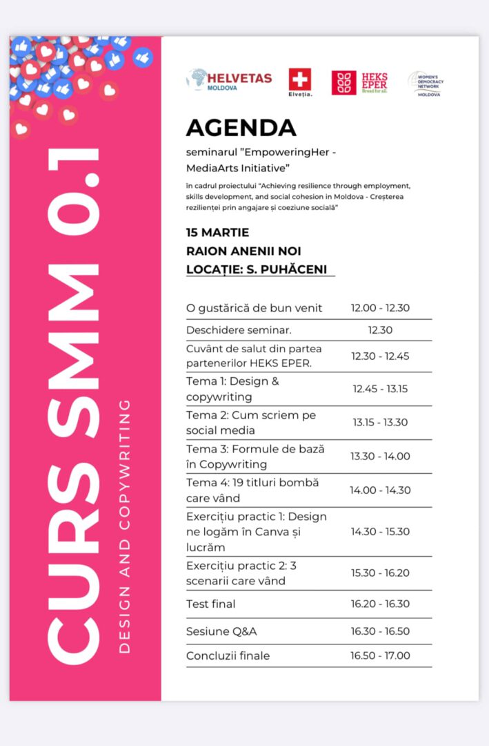 Cursul „SMM 0.1” nu a reprezentat doar o instruire tehnică, ci o investiție în consolidarea capacității comunităților rurale de a utiliza instrumente moderne pentru promovare, colaborare și afirmare. Procesul de învățare continuă prin sesiuni de mentorat individual, menite să sprijine aprofundarea cunoștințelor și aplicarea practică a competențelor dobândite.