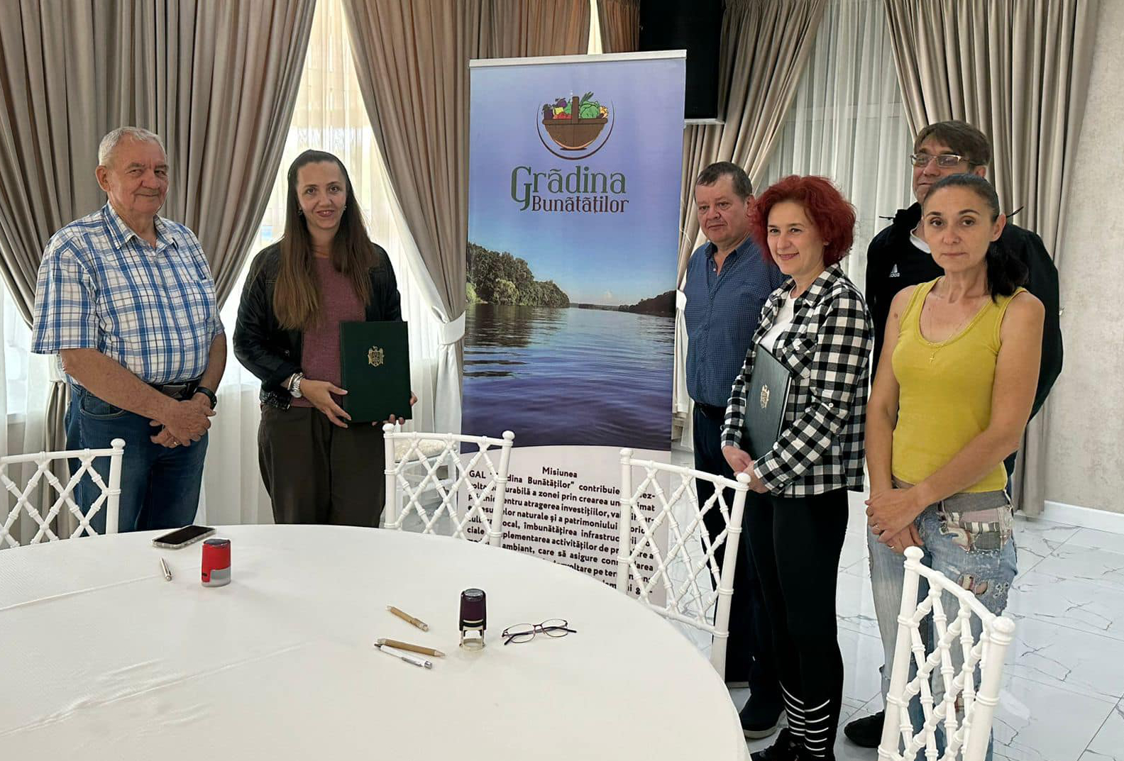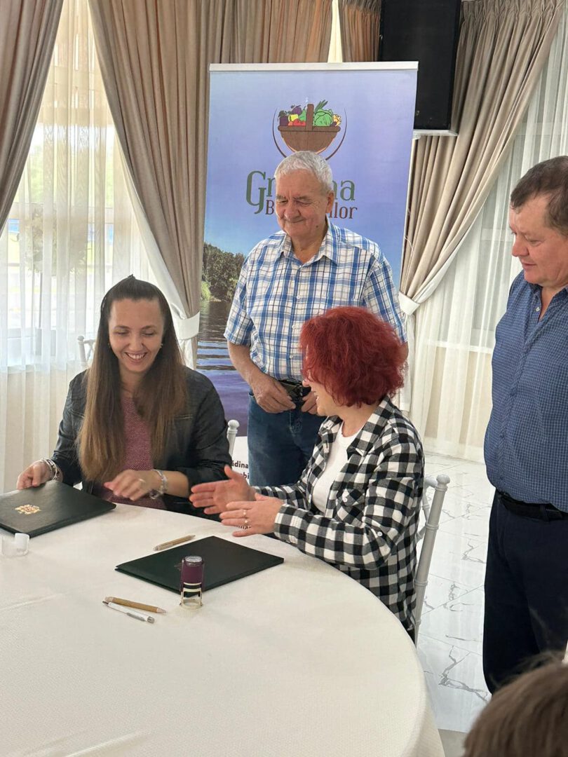 Momentul central al vizitei l-a constituit semnarea Acordului de colaborare dintre GAL Microregiunea Hârtibaciu și GAL Grădina Bunătăților.